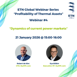 | ETN Global “Profitability of Thermal Assets” Webinar Series: Webinar #4 on Dynamics of current power marketsThe online webinar will take place virtually on 21 January 2026 from 15:00 to 16:00 (CET).... Read more.